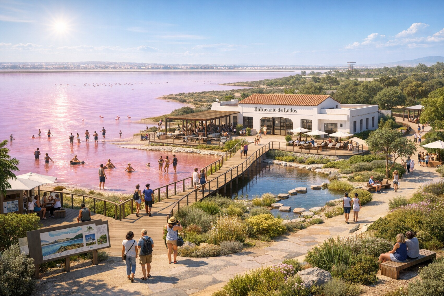 Rehabilitacja "Balneario de Lodos": Odnowienie opuszczonego budynku dawnego uzdrowiska, który po pożarze w 2020 roku straszył wyglądem. Zostanie on przekształcony w nowoczesne centrum interpretacji przyrody oraz punkt promujący zdrowotne walory różowego jeziora.
